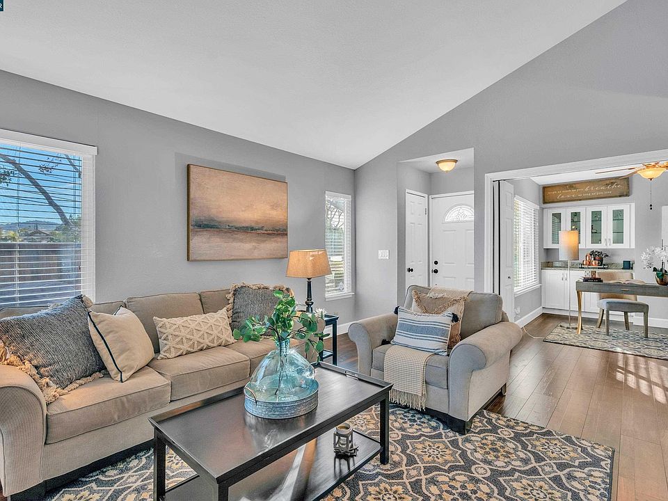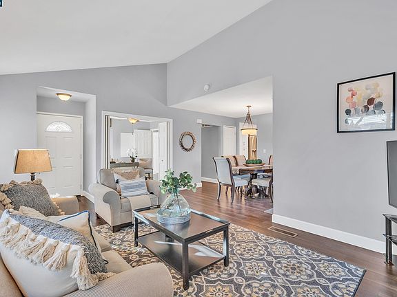 Beautifully updated single story townhome in the desirable Colony neighborhood surrounded by mature landscaping & a community pool. Enter into the inviting living room with 2 large windows, an abundance of natural light, a brick fireplace & vaulted ceiling. The adjacent dining room is framed by glass sliding doors to the outside patio. Next find an upgraded kitchen with sleek granite countertops & backsplash, SS appliances including a gas range/oven & built-in microwave, white shaker style cabinets & recessed lighting, along with a separate laundry area with extra storage. The spacious primary bedroom boasts vaulted ceilings, 2 large windows & an ensuite bath enjoying a walk in shower. Enjoy 2 additional generously sized bedrooms, one with option as an office, & a hall bath with shower/tub combo. Additional features include engineered wood flooring throughout main living areas, attached 2 car garage & community pool. Minutes to Limeridge open space, shopping, dining, parks & K-12 schools.