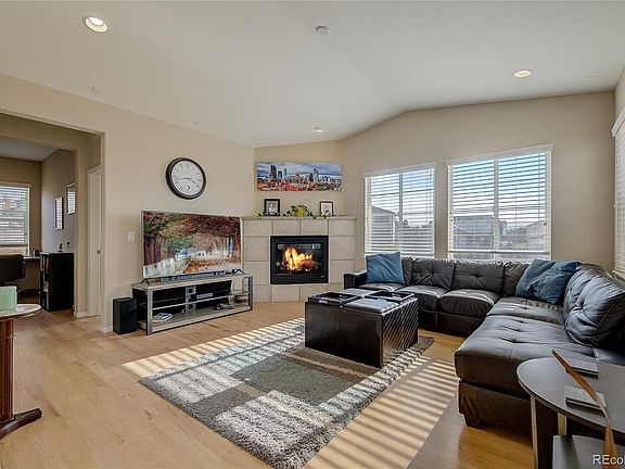 Wonderfully appointed Heckendorf Ranch two-story delivering scenic mountain views! Situated on a greenbelt lot adjacent to the community playground, this move-in ready residence offers a spacious 2,537-square-foot floor plan with an unfinished walk-out basement. Gorgeous hardwood floors welcome you into a bright, open-concept interior complement by vaulted ceilings, recessed lighting, and contemporary finishes. Everyday luxury abounds in the pristine eat-in kitchen, which showcases granite countertops, abundant storage space, and a large center island that encourages family and friends to gather. Upstairs, the primary suite delights with a walk-in closet and 5-piece bathroom. Two additional bedrooms, a full bathroom, a laundry room, and a versatile loft complete the second-story floor plan. Completing this stunning property is a fenced backyard with a deck, stamped concrete patio and a manicured lawn, offering ample opportunity for relaxation, play, and entertaining! You'll be immediately at home in this friendly Castle Rock community, your door just blocks from the community pool. Find World Compass Academy, a free charter school, less than 5 minutes from home.