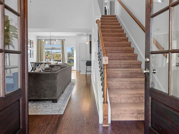Step inside to find a spacious open-concept living area with a cozy gas fireplace and gleaming wood floors that flow effortlessly into a separate dining room and a bright, eat-in kitchen. The kitchen features beautiful granite countertops, dark kitchen cabinets, and stainless steel appliances. This listing also includes the refrigerator, washer, and dryer, and is all ready for your move-in day!