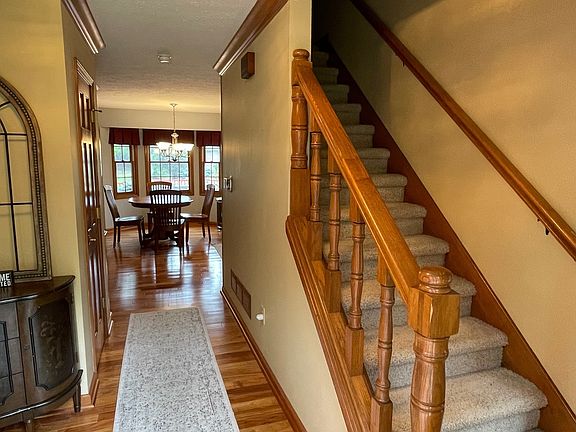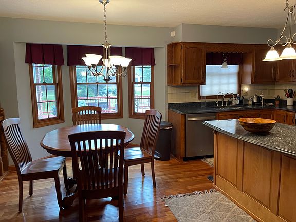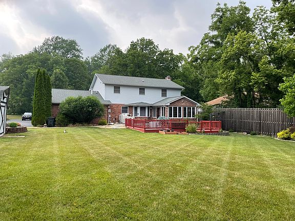 Beautiful Schildmeier Woods is where you'll find this terrific 4 bedroom home! Kitchen has gorgeous hardwood floors, breakfast island, granite counters, and stainless appliances. Great room with beams and gas fireplace. A 14x13 sun room that overlooks your spacious back yard, deck and outdoor kitchen with 4 burner gas grill, granite, sink, mini fridge, gas fire pit. Master suite with vaulted ceiling, walk-in closet, updated bath including a step in shower, double sinks, tub. Laundry room on main level. Walk-in linen closet and all bedrooms are upstairs. 2-car att. gar. Whole-house water filtration system and kitchen reverse osmosis component included. Only outdoor spigots and util. sink in garage are unfiltered.