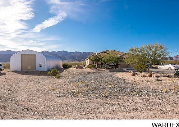 A home makers delight with majestic views abound by desert vegetation and wildlife. This property is situated on 2.35 acres with own private water well ,3 storage tanks,(2) 2500 gal & (1) 1500 gal used for irrigating. Enormous 30 x 60 steel garage with power, concrete floor and 12'x14' over head door to accommodate the biggest of motor homes/RV's. This bright open floor plan displays tile flooring,10 ft ceilings with 3 spacious size bedrooms, 2.5 bathrooms plus separate den area. Living room flows into the formal dining area and deluxe family room with fireplace. Generous kitchen with large circular center island with onyx top and underneath cabinets for extra storage. The birch cabinets offer durable beauty and plenty of space. Access the back covered patio from the kitchen and take in the angelic views from the back. The spacious master suite is arranged on its own wing of the home and offers walk in closet, dual sink vanity and garden tub with separate shower. Roads to property are county maintained, if your are looking for fine rural living come take a tour of this wonderful property, you won't be disappointed!