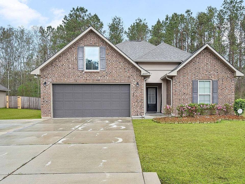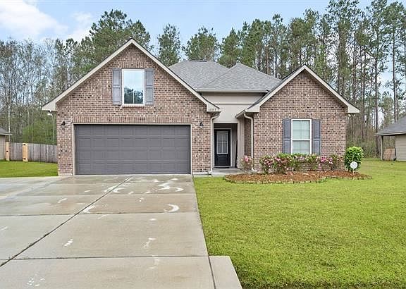 Location for the WIN! This beauty is light and bright and located on a large lot in a small, neatly kept subdivision only 5 minutes from I-12. The private primary suite features a walk-in closet, linen closet, double vanity, soaker tub, and separate shower. Extras include granite countertops, stainless appliances, a dedicated desk area, a spacious patio, and an extra-large concrete parking pad.