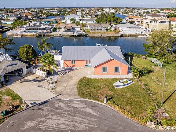 Waterfront Opportunity - Ready for Your Finishing Touches! Located on a quiet cul-de-sac with direct Gulf access, this 2-bedroom, 2-bathroom home with a 2-car garage is a boater's dream. Enjoy the convenience of a boatlift large enough for a pontoon boat, a floating dock, a davit, and a concrete seawall—perfect for waterfront living! The home has been refreshed, with new drywall, new electrical outlets, and fresh interior paint, providing a solid foundation for the next owner to add their personal style. The major components are already in place, including a new water heater, newer windows, and a durable metal roof installed in 2020. Lights and ceiling fans are installed, while the open layout invites you to purchase cabinets, fixtures, doors, and trim to match your vision. Some flooring and countertops are on site. Step outside to a screened and covered lanai spanning the full length of the home, complete with a doggie door leading to a fenced yard—a perfect retreat for relaxing and entertaining. The exterior was painted in 2020, and the attic offers decked, stand-up storage space for added convenience. This is an incredible opportunity to create your dream coastal home in a prime waterfront location. Close by you'll find restaurants, a marina and nature trails in the Weeki Wachee preserve. Don't miss out on this blank canvas ready for your finishing touches!