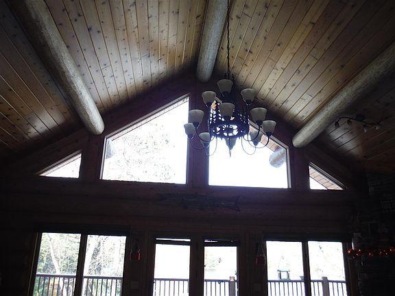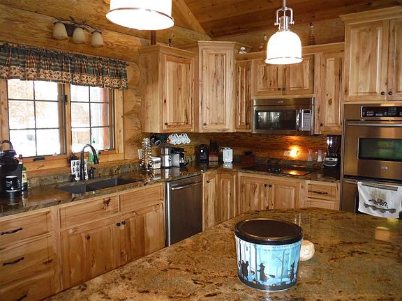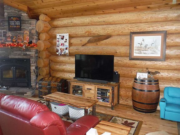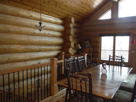 Here we are offering an executive full log home with 12 to 16 inch full log walls. Most of the interior wood walls were hand hewn from the land. Three nice sized bedrooms with the potential for a fourth but one room currently used as an office area. There is a sauna room off of the lower level bathroom, a theater room, and another large room currently used as the laundry and hobby area. Main floor laundry hook ups as well in the mud room off the interior garage entrance. The main floor master bedroom has its own private bath with whirlpool tub and stand alone ceramic tiled shower, and large walk-in closet. Another bedroom and full bath on the main floor as well. Beautiful hardwood flooring and plenty of natural light in the living, dining and kitchen areas. Hickory kitchen cabinets with granite counter tops and kitchen island where everything flows together for cooking and entertaining. Double built in oven and stove top makes preparing meals a breeze. A detached guest house with bath and saunaAdjacent lot is included to give you extra privacy