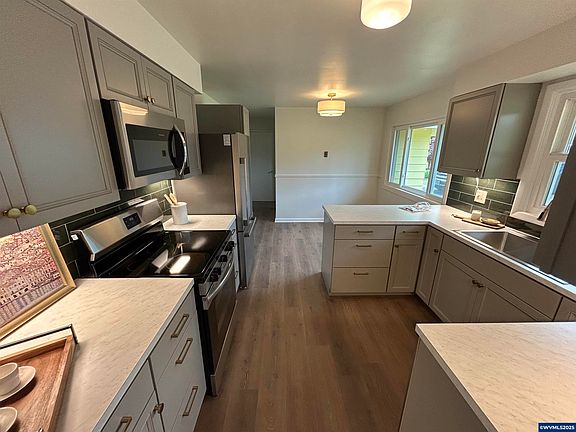 Rare Single Level Ranch in Quiet, Established South Salem Neighborhood. Beautiful 1/4 Acre Lot with 100sf Shop/Shed/ADU & Plenty of Gardening Space. Brand New LVP through most of the home, w/New Carpet in the Bedrooms. Remodeled Kitchen w/New Cabinetry, Laminate Countertops, & Stainless Steel Appliances. Open and Very Functional Living Room & Formal Dining Rooms. Lighting, Plumbing & Hardware Feature Modern Brass Finishes. Mini Split in Main Living Area Allows for Comfortable Heat and Cooling.