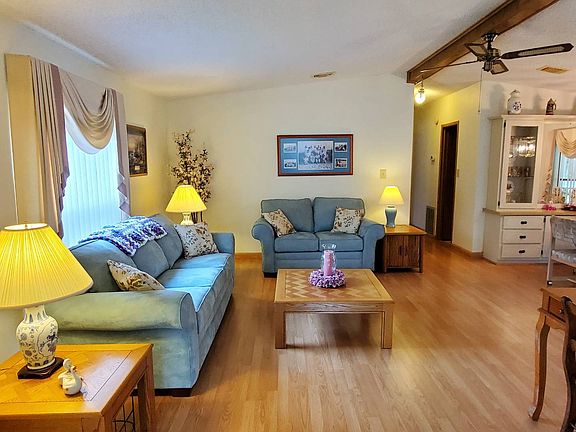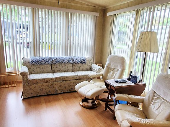HIT THE BRAKES! IT WILL SELL FAST! This will cared for home comes with everything except your toothbrush! Gorgeous double wide with 2 Bedroom and 2 baths offered fully furnished and turn key. This home features drywall ceilings and walls, double paned replacement windows throughout, very nice glass slider windows in the sunroom, full home water softener and so much more. This home shows beautifully - it is nicely furnished, super clean and extremely well cared for. Laminate flooring (plywood sub-floors) and vaulted ceilings add to the open feeling. There is a bonus room in front with lots of windows - this would make a wonderful office, craft room or just extra living room space. Both bedrooms are very spacious with large closets. If you are looking for a perfect Florida home that is move in ready... make sure to see this one. Monthly fee of $643. Located north of the Tampa/Clearwater/St. Petersburg metro area, Clover Leaf Farms is a 55+ retirement mobile home community that is big on amenities. Offering two spacious clubhouses, billiards, shuffleboard courts, pickle ball and catch/release fishing you won't be bored here. There is also a dry sauna, indoor heated swimming pool, and a whirlpool-spa-hot tub as well as a large heated outdoor pool and new fitness center being built. This Brooksville, FL mobile home neighborhood will never leave you wanting. Clover Leaf Farms also provides its residents with a pet friendly environment that includes RV storage, a scenic picnic area, and on-site management. With so much to offer, you can't go wrong when you choose to live at Clover Leaf Farms. Lot rent includes water, sewer, trash pick up 2x per week and lawncare.