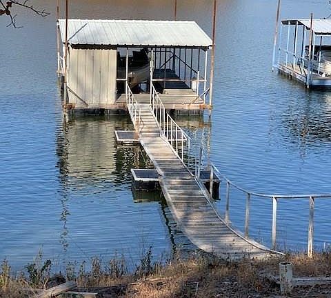 WATERFRONT W/ BOAT DOCK! Enjoy Lake Eufaula and its excellent views from this 3 bed, 2 bath home with large living/ dining room combo and separate breakfast nook. Deck wraps around half of the cabin to enjoy quiet summer nights or great for entertaining guests, not to mention the added convenience of the gentle walk to your private boat dock.