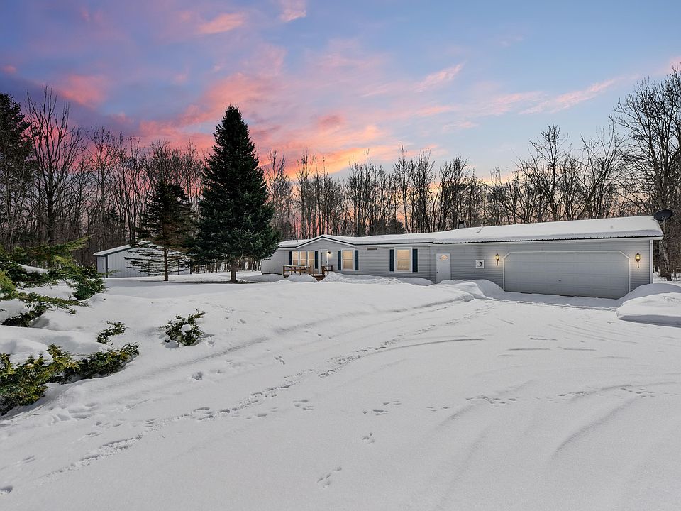 Take a close look at this turn-key 3 bed 2 bath ranch home, built on 3+ acres bordering the Chippewa River! This home is spacious, with an open/modern layout. The setting is secluded, and a long private drive hides the house from the road view. No close neighbors and tons of yard space=perfect for a family! Several hundred feet on the Chippewa River ensures abundant wildlife activity in the area, along with fishing and kayaking potential. Recent updates throughout the home include doors, windows, water heater, carpet, and appliances, all of which are energy efficient and can be included with the right offer. Home comes mostly furnished, with large attractive pieces also included at the right price. Attached 1 car, and bonus 2+ car garage for plenty of storage. Call me for more!