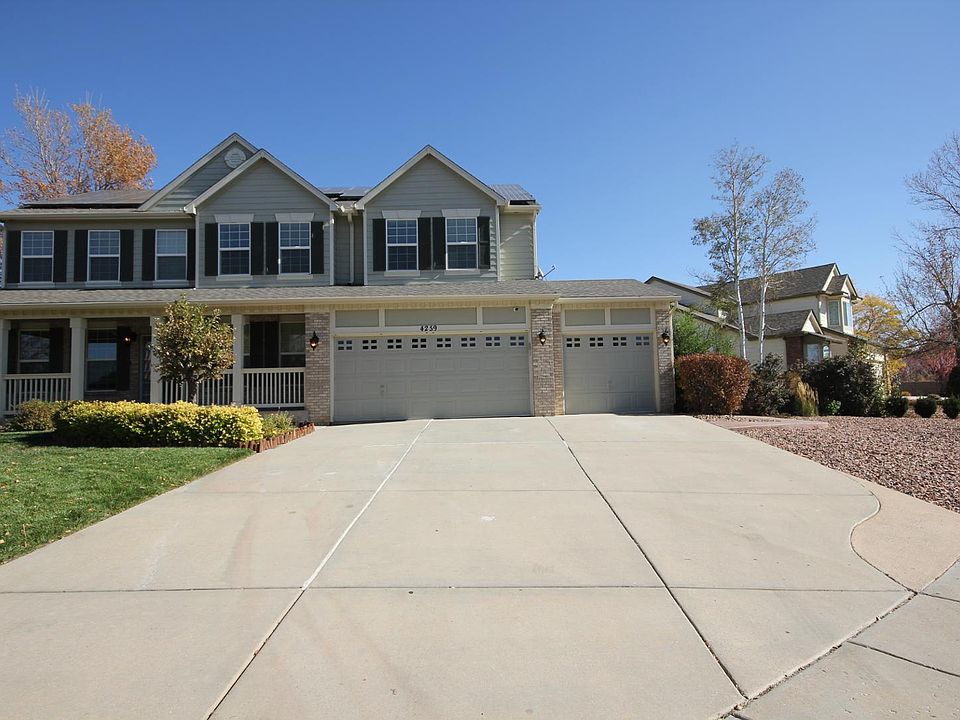 Immaculate 6 Bedroom Home in a Very Desirable Neighborhood with mature trees, landscaping and 3 car garage! Beautiful exterior front with a large front porch for your rockers and coffee. Large fenced in back yard with green sod, firepit, shed and covered deck with gas line for barbeque. Upon entering this home, you will fall in love immediately! Formal Dining, Formal Living, Office, Great Room with vaulted ceilings, floor to ceiling windows, Gas Fireplace flows to the Spacious Gourmet Kitchen. Kitchen features a pantry, granite countertops, gas range, double ovens, tons of cabinet for all your cooking needs. The kitchen island is in the center of the kitchen and is a great place for prep cooking. Rod Iron Rail, Real Wood Oak Floors take you to the upper level where there are 4 bedrooms! Catwalk looks down to the Great Room. The Primary Suite is Huge! With views to the mountains, neighboring homes and culdesac. Vaulted ceilings with can lights and an Amazing built in entertainment unit with storage. Primary 5 pc bath has a jet tub and standing shower, and organized closet feature. Laundry is on the upper level with a shelf for folding. Walk down to the finished basement and enjoy the warm cozy fireplace, family room, updated bath and two bedrooms. Great location within minutes to Peterson A/F, Powers Corridor with all the amenities, Parks, Schools and so much more!