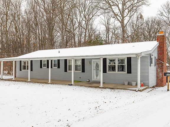 Online Real Estate Auction - Tuesday, March 4th | Bidding Open 9am to 6pm. This 3-bedroom, 2-bath ranch home offers over 1,600 sq. ft. of living space on 2.8+/- acres. The home features a full dry basement with tall ceilings, a spacious living room with a wood-burning fireplace, and a large eat-in kitchen with wood cabinetry. Enjoy the covered front and back porches, with a porch swing for relaxing. The property includes two garages, one with a heated workshop, plus a large storage barn. Located in a peaceful country setting yet close to restaurants, schools, parks, and shopping. Selling at an online auction—This property will fall in a price range affordable to many - inspect, arrange financing and get prepared to bid your price.