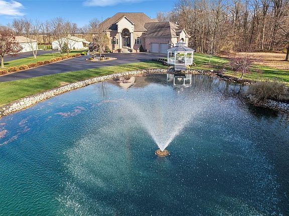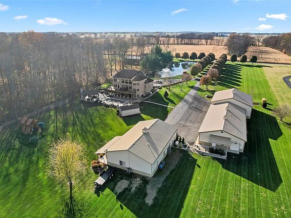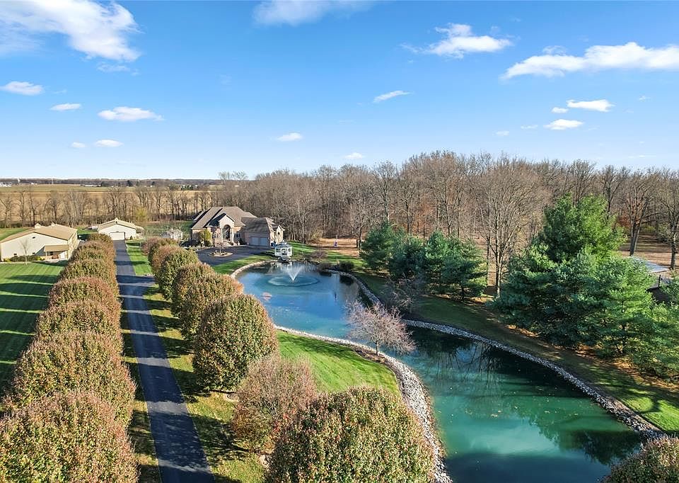 Elegant 6.25 acre estate in Johnson Co built for entertaining & the car enthusiast! This beautiful 6,750 sq.ft., 5 bed, 4.5 bath 2 story all brick home offers a walk-out basement, a tree lined drive w/views of the pond & fountain. Heated & cooled 10 bay outbuilding, add 40x64 pole barn w/apartment. Luxury feat. & updates include, soaring ceilings, 2/story stacked stone fireplace, floor to ceiling windows in GR, auto shades, custom wrought iron railing, remodeled master bath w/2 person shower, gourmet kitchen, theatre & rec room, wet bar, screened-in porch & more. Enjoy views of the award winning pool area, outdoor pavilion & gas firepit. Visit https://indianaskypics.hd.pics/4259-N-600-E for a more in-depth view of this beautiful property.