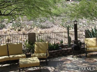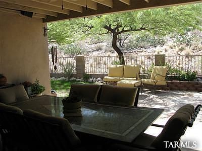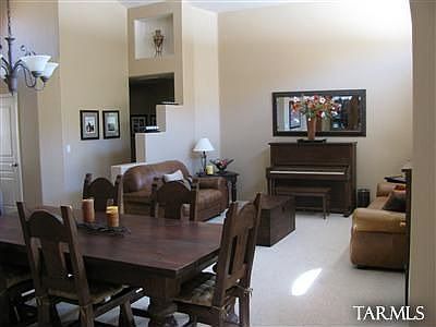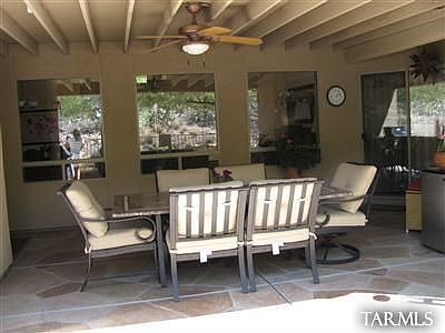 Lovely one owner home w/many custom touches & oversized garage, offers peaceful evenings on the back patio where deer frequently appear in desert behind. Be impressed w/the great windows w/arches above & layout. Custom paint,lots of tile,kitchen w/lrg pantry,island & choice appliances,fmly rm w/fireplace & niches,lrg master w/door to patio,garden tub & shower,dual sinks & vanity,newer lighting & ceiling fans.In gated community w/pool & spa.