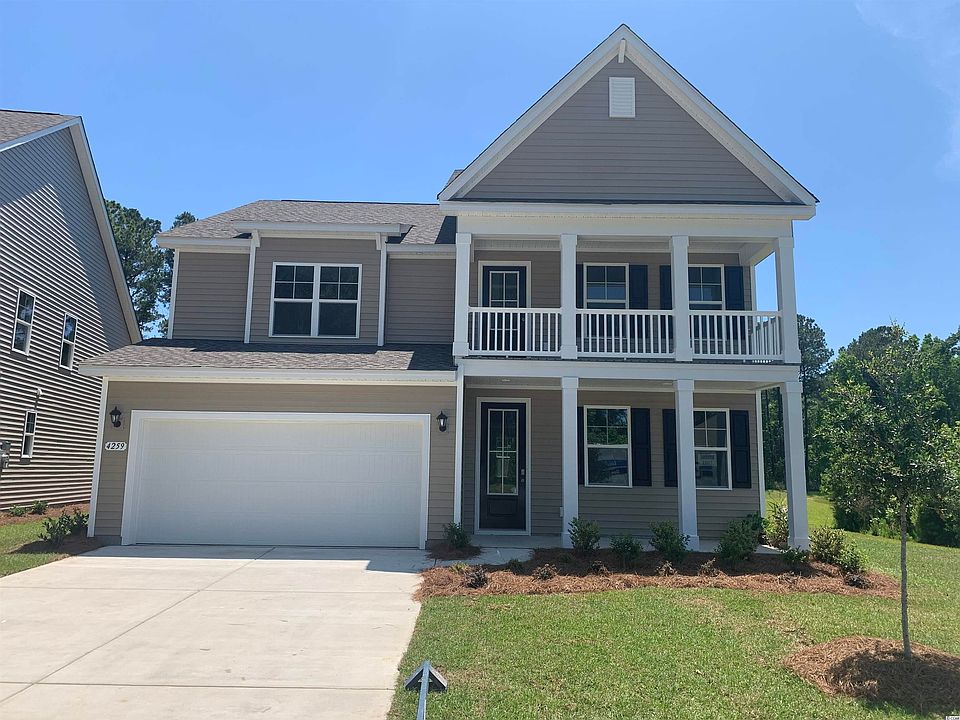 Hidden Brooke is a beautiful community with an amenity that includes a pool with large deck area, clubhouse, and exercise room. Minutes away from Highway 31 which provides quick and easy access to all of the Grand Strand's offerings: dining, entertainment, shopping, and golf! Tranquil setting just a short drive to the beach. This popular Harbor Oak plan functionality and style together! Incredible curb appeal is an understatement given the stacked front porches and tall entry door with glass. Once inside, laminate wood floors flow throughout the main living areas creating an inviting space and numerous windows bring in fantastic natural light. Off the entry is a spacious flex room that would make the perfect home office or formal dining room. The large gourmet kitchen boasts white painted cabinetry, granite countertops, an oversized island, stainless Whirlpool appliances including a gas range, and a beautiful Butler's pantry right across from the walk-in pantry. Spacious bedroom and full bathroom on the first floor are great for guests visiting you at the beach. Upstairs you will find the grand primary bedroom suite with a cozy sitting room, huge walk-in closet, and en suite bath with large separate vanities, linen closet, and tile shower! Two additional bedrooms, a hall bathroom with a double vanity, and a great loft space with lots of storage complete the upstairs. This home will also feature an extended garage and a spacious rear screen porch. *Photos are of a similar Harbor Oak home. (Home and community information, including pricing, included features, terms, availability and amenities, are subject to change prior to sale at any time without notice or obligation. Square footages are approximate. Pictures, photographs, colors, features, and sizes are for illustration purposes only and will vary from the homes as built. Equal housing opportunity builder.)