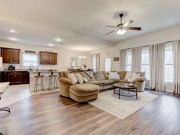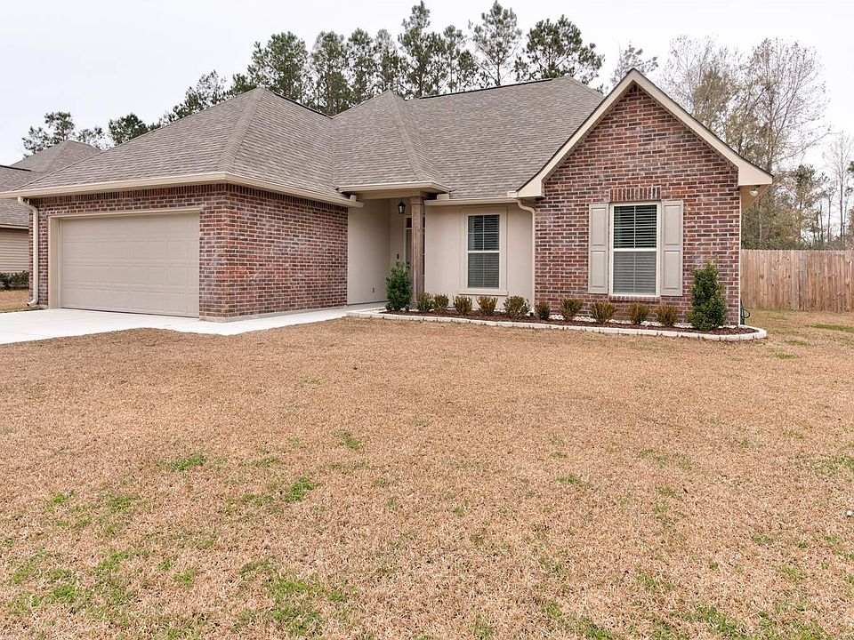 BEAUTIFULLY kept 4-year-old home in quiet Bass Lake subdivision. This 3BR/2BA home boasts an open floorplan. Kitchen includes 3cm granite counter tops, undermount sink, stainless appliances including refrigerator and large island. Newly installed vinyl plank flooring in living area and hall. Huge utility room and walk-in pantry. Outside is a large, fenced back yard with side gate and covered rear porch. Convenient access to interstates, shopping, restaurants and community events.