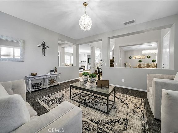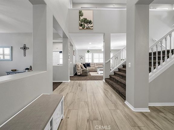 Welcome to your personal mini resort! This 4 bedroom, 3 bathroom home is a true gem located in the highly sought after Crowne Hill community! This home is not only luxurious and upgraded, but is a gorgeous 3,475 square feet resting on a quiet and peaceful cul-de-sac. This home includes a vast floor plan, upgraded porcelain tile flooring, white cabinet kitchen, floor to ceiling mosaic living room tiles, resort style pool, and a backyard BBQ including a built in tap, firepit, sink and space for a big screen TV! The contemporary amenities include EV charging, solar, large under stair and above garage storage, and dual A/C units. This home – in addition to the bedrooms – has a loft perfect for a game room/movie room, a downstairs office, a family room, a formal dining room, a dog run with dog door, and a side play area for your kids or entertaining. Also the 3rd car garage has had mirrors added for your perfect home gym or yoga space. You’ll appreciate the short drive to the wineries, shopping mall, restaurants and grocery stores where you can truly embrace life in Temecula! This will go quickly – come see this beauty for yourself!