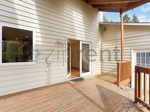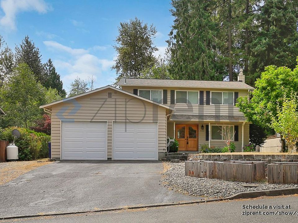 This property is available. Please inquire on this site to schedule a showing. Enjoy the good life at this 4 bed 1.5 bath situated on the quiet end of a cul-de-sac in a peaceful and friendly neighborhood. The home has a private and peaceful feel with a large covered back deck facing the woods. Planter boxes, apple trees, and a sprinkler system create a garden environment. The great outdoors is only a moment away with close proximity to North Creek Trail and nearby shopping is available at Mill Creek Towncenter. Upon entering through the French doors you'll notice beautiful hardwood floors and a stone fireplace for a cozy ambiance. The kitchen captures lots of light and a beautiful view through glass doors that open up to the covered deck, The kitchen is outfitted with a built-in stove, refrigerator, double oven, a microwave, and lots of counter and cabinet space available for storage, preparation, and serving. The 4 brightly lit upstairs bedrooms include carpet for a soft foot feel and ample closet space in each room. The floor plan design maximizes the amount of space available in each bedroom. The home includes a fully insulated workshop area and 6 parking spaces including driveway and garage parking. Pets are allowed on a case-by-case basis with an additional deposit. Security deposit is 1x the rent amount. All utilities are tenant's responsibility. Heating: Wall, ForcedAir Appliances: Dishwasher, Washer, Dryer, Microwave, Range Oven, Refrigerator Laundry: In Unit Parking: Attached Garage, Off Street, 6 spaces Pets: Dogs Allowed, Cats Allowed Security deposit: $3,400.00 Included Utilities: None Additional Deposit/Pet: $500.00 Disclaimer: Ziprent is acting as the agent for the owner. Information Deemed Reliable but not Guaranteed. All information should be independently verified by renter.