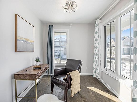 Premium CORNER LOT! Built in 2019 with Mattamy detached Woodland model home in a desirable and quiet Barrhaven Half Moon Bay West neighbourhood. This two-story DETACHED home features 4 bedrooms, 3 bathrooms, living/dining rooms and DOUBLE garages. 9 FT ceiling and hardwood throughout the living room and home office on the main level. Open concept kitchen with upgraded cabinetry and backsplash, patio door from the dining room to large backyard. Four bedrooms on the 2nd floor. Spacious primary bedroom with its 4-piece ensuite and walk-in closet. 3 additional bedrooms and a laundry room. Top ranking John McCrae high school zoning, close to half moon bay elementary school, shopping, restaurants, transit, Minto recreation centre, etc. Offers welcome anytime.