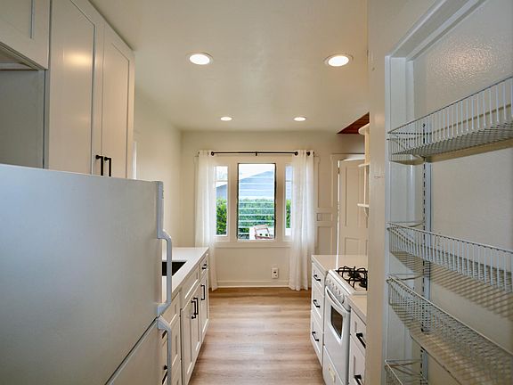 Just remodeled! Rear back cottage in North Laguna with front porch and lawn. Hardwood floors in living room with fireplace and loft. One parking spot off alley in back with washer and drier on side of house. Walk to beach and town.