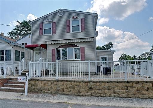 Amazing NYC views from this Waterfront home. This 3 Bedroom w 1.5 baths features a 3 season sunroom w Italian tile flooring. Newly updated EIK w breakfast bar and new ceramic floor. 2 Zone HWBB heat. Half Bath is brand new. ALL windows are triple paned for maximum energy efficiency, Low E glass, blocks out UV rays.