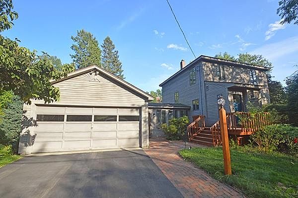 Welcome Home to this lovingly updated Colonial well sized on 3.91 acres of rolling lawn, meadows and mature plantings providing a serene private location to enjoy nature and wildlife. Across the street is the fairway of Bradford Country Club. Close to route 95 and 97. Open flowing concept on the first floor with beautiful hardwood floors. Kitchen has cherry cabinets and coriander counters. Laundry/pantry off kit. has good storage and custom cabinetry. Great room/family room w/walls of glass, skylights, and a soapstone wood stove (left as a gift). Sliders open to the long wrap around deck with views of the grounds. Office/den or Master bedroom has pocket doors for privacy. Ceilings are high, windows are over sized to bring an abundance of light. A breezeway connects the 2 car attached garage. LL/basement has terrific additional space for workshop or exercise room or for storage. Property contains 2 deeded parcels.