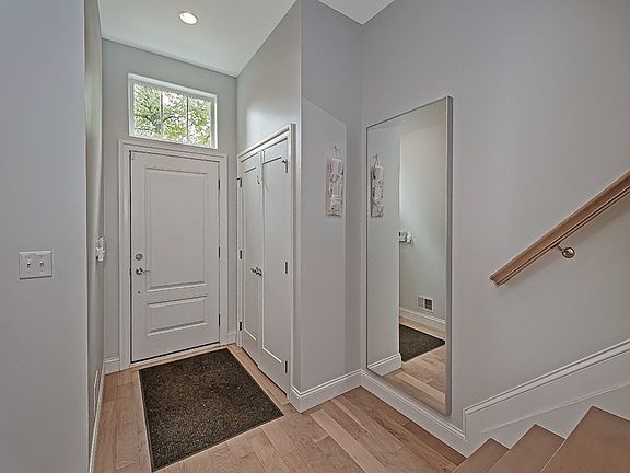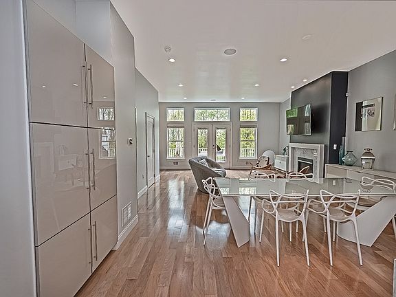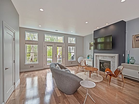 This home boasts a contemporary open-concept floor plan and sleek modern finishes that cater to your lifestyle. Upon entering, you will be greeted by a bright and airy living space with 10-foot-high ceilings, and neutral colors that complement the natural lighting and create an inviting atmosphere. The kitchen is perfect for entertaining guests with a large marble island, Jenn-Air appliances, and ample counter and cabinet space. The 2nd level features a spacious primary bedroom suite, complete with a walk-in custom closet, as well as a bath with a dual-sink and a glass-enclosed shower. The secondary bedrooms offer roomy closets and a shared hall bath. Additional highlights of this stunning home include an upper-level laundry room, powder room, finished basement with a half bath, wet bar with wine/beverage fridge, a surround sound system throughout the house, a composite decking, and 2-car garage. The home is located adjacent to a 25-acre natural preserve with a trail connection.