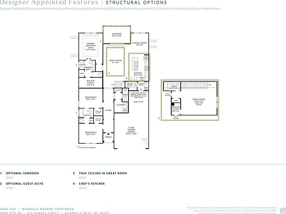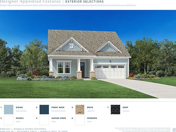 Ready in August! Wren Bay boasts over six acres of pristine ponds, 2.5 acres of wetlands, and 2.8 acres of green space. The resort style swimming pool will offer a sundeck, bath house, and outdoor gathering space. Easy access to everything you need right outside your door! We are just 5 miles from the crisp blue waters of the Atlantic Ocean, 3 miles to Marshwalk, and just minutes from retail and grocery shopping. This Magnolia Plan offers an open concept with soaring 10ft ceilings, gas cooking, EVP plank flooring, covered porch, double door entry into the Master, and double sinks. The garage is a wood workers dream with a tandem garage, that can be used as a workshop, golf cart bay, or extra storage!