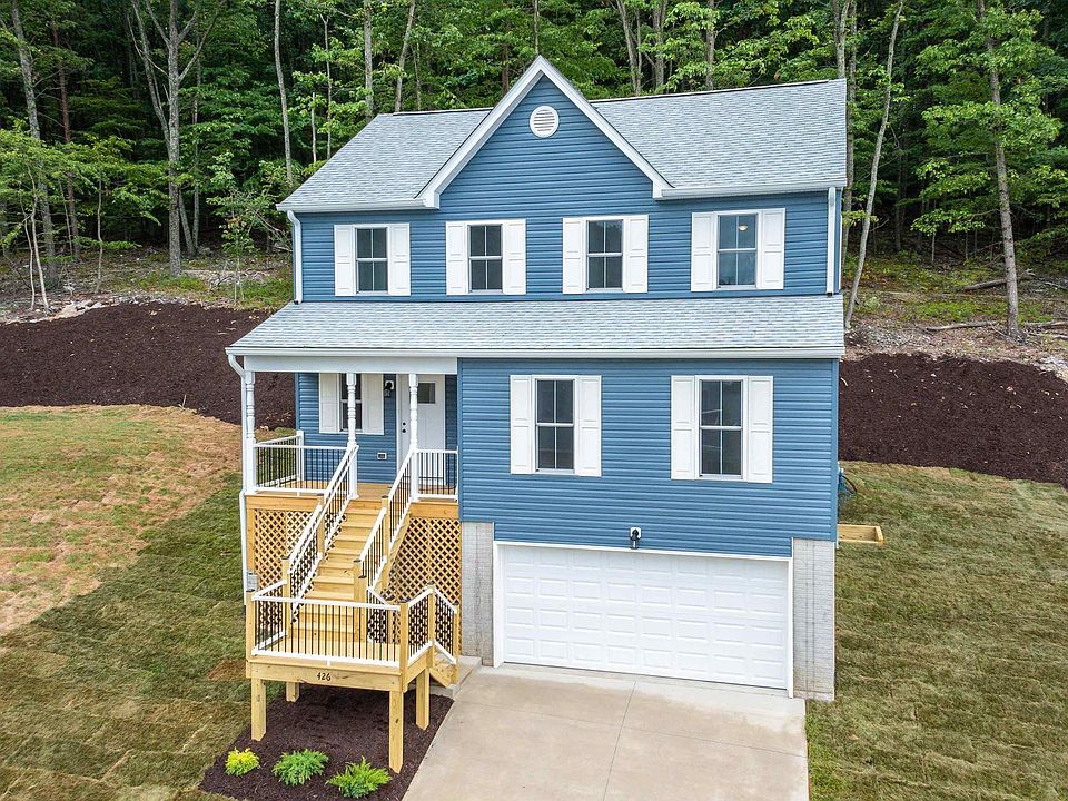 Entered for Comp purposes only. Presold. Country Living w/City Conveniences! Nestled on the edge of Betsy Bell Mountain, in the smaller stand alone neighborhood of Frontier Crossing, this home offers so much. Brand new construction on an elevated lot, located in Staunton, VA. Featuring a huge fam rm on main lvl (19.7x19.8), an open kitchen/din combo w/walk in pantry, 3 nice sized bedrms upstairs (owners w/att full bth-ceramic surround shower), full bth (1 piece surround shower/tub) in hallway & walk in laundry room. The basement level delivers the extras w/a 2 car garage & concrete driveway, a comfortable bedrm w/full egress window, bath w/tile surround shower & a rec rm. Enjoy nature on a daily basis, from the comfort of your own home and access to low traffic trails that are almost in your backyard. This home is perfect for someone who needs extra space to spread out on the inside & plenty to do w/in mins from your door step. About a 5 min drive to downtown Staunton's finest restaurants, shopping, bakeries & Gypsy Hill Park.