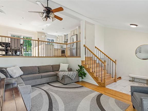 Welcome to this inviting home, where you are greeted by a LR with a soaring cathedral ceiling, filling the space with natural light and an airy ambiance. Elegant crown molding and recessed lighting add a touch of sophistication to this welcoming area. At the heart of the home, you'll find a stunning, newly renovated kitchen featuring light cabinets, complimented by aesthetically pleasing backsplash, sleek quartz countertops, perfect for culinary creativity.