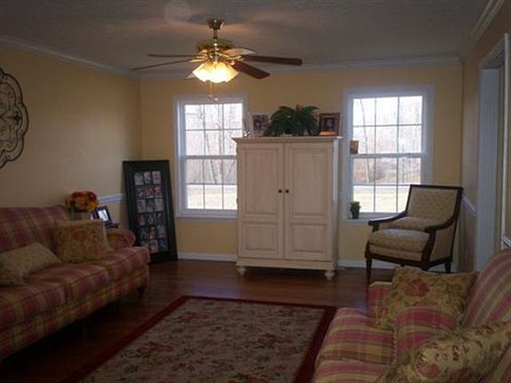 Lovely 2 story home with 3, possibly 4, bedrooms, 2.5 baths, crown molding, hardwood floors, gas fireplace, master with jetted tub & separate shower, partially finished walkout basement on 2.47 acres. 15-20 minutes from Ft. Knox. Seller including 1 year home warranty.