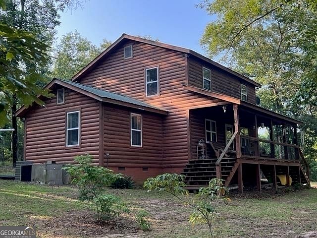 Very Secluded 1,624 square foot 3 bedroom 2 bath log cabin overlooking a 60+year old 2 acre pond full of beautiful bass and bream. Pond has two aerators and a dock 59.31acres fully wooded (pine-oak mix) Great road system that completely encompasses the property. Property lines are clearly marked. Recent survey. House has 123 year old heart pine floors (reclaimed from a Thomaston textile mill), cypress walls, bead board pine ceilings All new stainless appliances Turn key. Includes all furnishings Tractor and golf cart Shop and storage building Well and septic Underground power from county road to the house. This property is located less than two miles from the new Heritage Links Golf Resort that is now in the process of development.