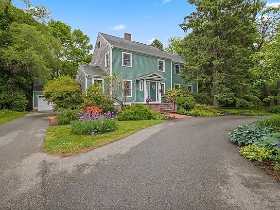 Light and bright 10 room family home with over 3000 sq ft of living space, 4 bedrooms 3 full bathrooms. On almost acre of landscaped yard with mature trees and many lovely perennials. Sun filled kitchen with marble countertops, stainless steel appliances and gleaming hardwood floors. Elegant dining room and fireplaced living room and a home office with closet that could be used as a bedroom. Huge family room right off the kitchen features custom built in bookshelves and access to a beautiful three season porch. Full bath on first floor, utility room with loads of storage, and washer/dryer hook-up and a walk-in closet. The second floor features a large master bedroom with a full bath, three more generous size bedrooms and a full bath and a large walk-up attic with copious storage. Detached oversized, heated 2 car garage with work area and finished second floor provides a bonus space for a second office or gym. Whole house generator and central vacuum. Walk to library schools town common