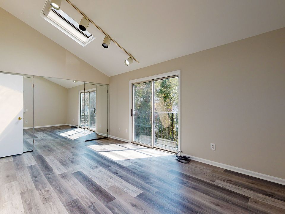 BRAND NEW FLOORING AND PAINTING!! 2 bedroom and 2.5 bath townhouse in quiet back section of a 4 unit condo home. Walk into your master bedroom and be greeted by the beautiful cathedral ceilings with a skylight and en suite bathroom. Washer and Dryer are adjacent to the master bedroom. Relax by the fireplace in the winter and enjoy the summer rays on the attached patio deck. Please review the virtual tour prior to contacting us. This unit will not last! **Credit Score must be 650 or above One months security deposit and one months rent is due upon move in. Water, trash removal and 2 parking spots are included.