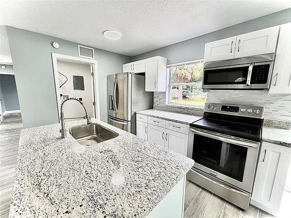 Welcome home! Gorgeous inside and out, this recently renovated contemporary ranch style home features a spacious open split floor plan with over 1,200 square feet of living space. With three bedrooms and two full baths this is the perfect home for a growing family. Marvel at the modern updates including contemporary tile plank flooring, and the accented light fixtures. The living area is warm and vibrant, replete with a surplus of space for accommodating a variety of family activities. The kitchen features sleek cabinetry, stainless steel appliances, and granite countertops. The master bedroom is expansive and en suite. Opposite the master, the other two bedrooms and the second bath are spacious and feature modern accents. Pair all of this with the mature and ornamental landscaping as well as the expansive back yard with an open patio area perfect for hosting outdoor activities and boat / trailer access gates along the side, and an indoor laundry room, theres no need to look further as youre home. Come see this one before its gone!