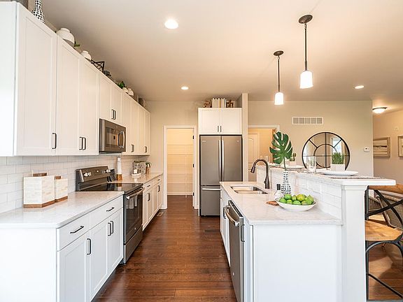 Popular Aspen II Floorplan, Move-In Ready Now!, Bourbon Bridge Toasted Chestnut Wood Laminate Flooring in Main Living Areas, Kitchen Features Level 4 Benton White 42in Tall Wall Cabinets, Argento Romano Laminate Kitchen Countertops with 8in Deep Single Basin Sink, Kitchen Features Breakfast Bar and Walk-In Pantry, Stainless Steel GE Kitchen Appliances, Vaulted Ceilings in Main Living Areas, Main Floor Laundry, Master Bedroom Features Two Closets, Level 3 Benton Sarsaparilla Adult Height Vanity with Double Sinks in Master Bath, Level 2 Mainsail Drive Ivory Mist Carpet in Bedrooms, Wire and Brace for Ceiling Fan in Bedrooms, Two-Panel Arch White Interior Doors with Satin Nickel Hardware, Exterior Features Coventry Platinum Gray Vinyl Siding and King Bourbon Trail Brick, Covered Patio Area with Wire and Brace for Ceiling Fan, 3/4 Bath Rough-In at Lower Level, Enclosed Soffit and Fascia, Community Features Lush Commonground and is in the Wentzville School District, *Similar Home Shown in Photos*,