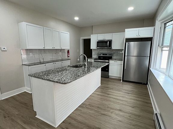 Welcome to this beautifully renovated home in Chester, PA. With five spacious bedrooms and 1.5 bathrooms, this house offers ample space for comfort and convenience. The gourmet kitchen is a chef's dream, equipped with a microwave, dishwasher, electric range, and stainless steel appliances. The abundant light and recessed lighting create a warm and inviting atmosphere. The house also features LVP flooring throughout, adding a touch of elegance and durability. The renovated bathroom, complete with a tiled shower, adds a touch of luxury. The dedicated office space is perfect for those who work from home, while the ample closet space provides plenty of storage. The house also includes a washer/dryer, an unfinished basement for extra storage or future expansion, and baseboard heat. Although there is no central A/C, the house stays comfortable year-round. The exterior features include a welcoming front porch and a backyard, perfect for outdoor activities. This house is not just a place to live, but a lifestyle of comfort and convenience.