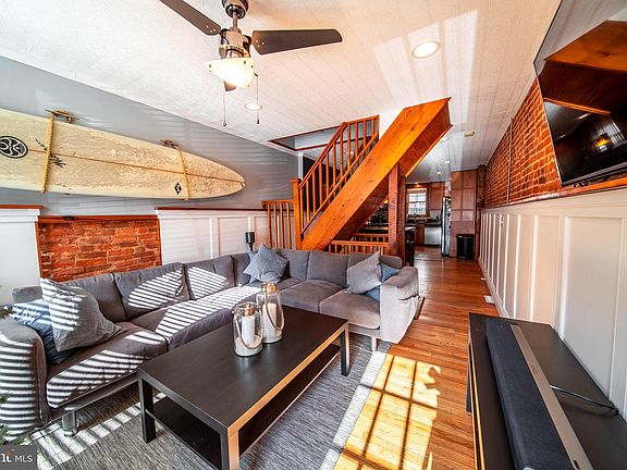 Lovely brick front home nestled on quiet street in Riverside area of Federal Hill! Main level showcases spacious living & dining areas with wainscoting, hardwood floors, tons of natural light, & exposed brick. Kitchen has granite counters, stainless steel appliances, breakfast bar & door to private rear patio. Second floor has 2 bedrooms & 2 bathrooms with hardwood floors & skylights. Rear bedroom has door to access rooftop deck with water & city views. Lower level has office/den, laundry & plenty of additional storage space. Close to Riverside Park and an excellent array of shopping, restaurants and entertainment. **Assumable VA interest rate at 3.375%** Come see this gem today!