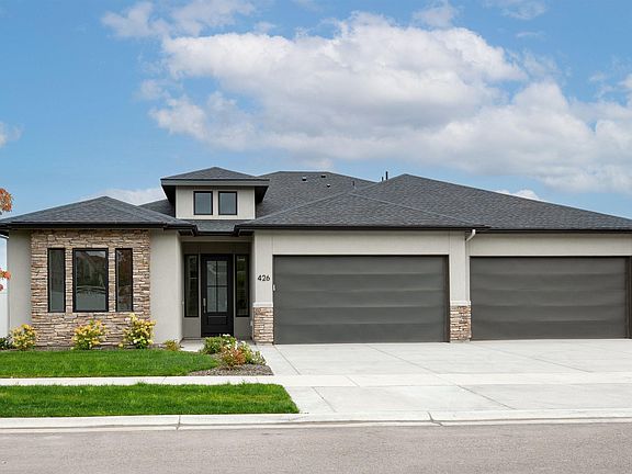Beautiful single level Poppy floor plan by KW Homes offers 4 true bedrooms & 3 full bathrooms. 4th bedroom could be a second primary suite/office. Garage over 1100sqft! Entry with trayed ceiling opens to large great room concept. Lovely, open kitchen boasts 6 Burner cooktop, huge, honed granite island. perfect for gathering, walk in pantry and easy access to the mudroom, laundry and garage. Great room style adorned by cozy gas fireplace and mantle and comfortably sized living spaces. Primary bedroom features a large, beautiful dual walk-in shower, elegant soaker tub, dual vanities & beautiful tile. All bathrooms with tile floors/hard surfaces. 10ft ceilings. Nearly 1/3 acre NE facing fully fenced backyard with covered patio to enjoy those summer BBQs. Oversized, finished 4 Car garage w/2 16x8 garage doors, 2nd bay 18.6x24, Full landscaping & fencing included. Brand new Shafer View Terrace subdivision. Amenities include future Pickleball/Sport Court, Picnic/Gazebo area and Tot Lot.