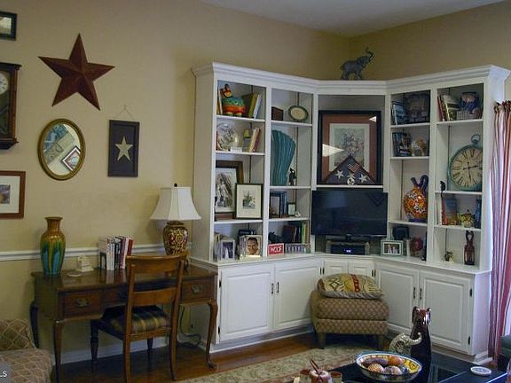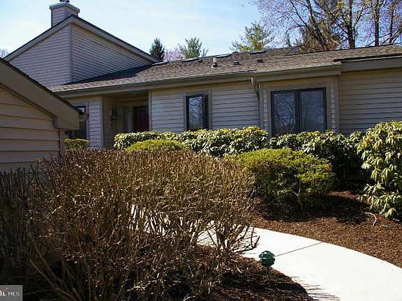 55+ living at its best! Come see this well-maintained 1 bedroom, 2 bath end unit home in Hershey's Mill. Features a Living room with a built-in bookcase, Dining room, and eat-in Kitchen with tons of storage. The bedroom has a walk-in closet and a slider door that opens to a serene patio, along with access to a storage shed. The home has a detached garage that fits 1 car and provides for additional storage. There is additional parking in front of the home. Hershey's Mill has numerous amenities such as a golf course, clubhouse, walking nature trails, tennis courts, pickleball court, and 24-hour security. This is a gated community beauty that you MUST see!