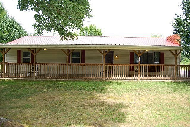 Enjoy quite evenings on the huge covered front porch of this super nice spacious ranch home! Recently renovated throughout! New metal roof, new double pane tilt in windows, flooring, paint, lighting, & more. This home offers 3 possible 4 bdrm, 2 baths, master with walkin closet, large living room with wood burning fireplace, big kitchen with island, (range, refrigerator, & dishwasher), spacious,
