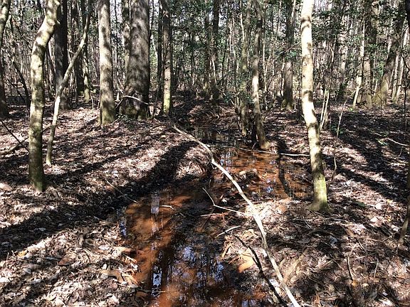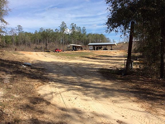 Property has a gated entrance, county water and power, and great hunting. Check out the 10 point on the wall, killed on the property. It is surrounded with large tracts of land. Approximately 50 acres of planted pines different ages, and mature hardwoods around the creek. It also has a 8x40 covered front porch to sit and over look the property. Pole barn has a RV hook-up with water.