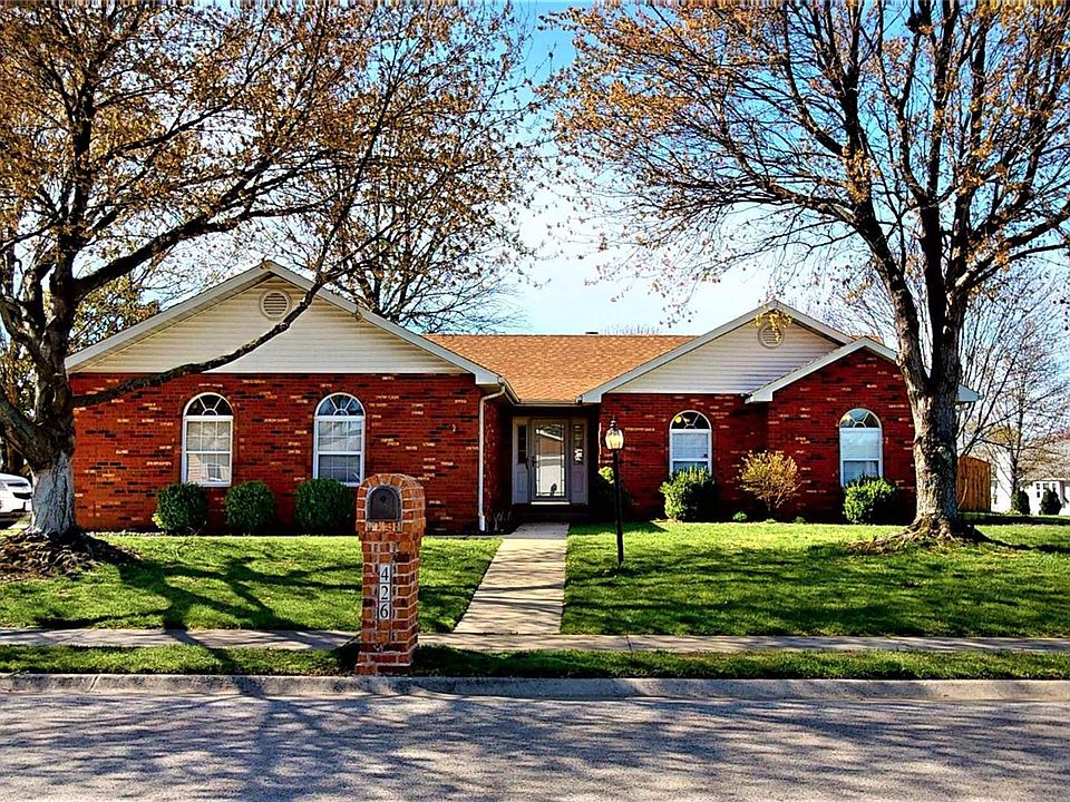 This beautiful custom built 3/4 brick ranch is located in the Wolf Branch school district on a corner lot. With 3 bedrooms and 2 baths, this large home offers a lot of great entertaining space.The kitchen is very large with a nice center island and an eat in dining room for all of your guests. The kitchen has an abundance of cabinets and newer stainless steel appliances, including a refrigerator, dishwasher, microwave and a brand new unused gas range. The washer and dryer are included as well and are only 4 years old. A phenomenal brick fireplace is a main focal point in the living room in addition to the large skylight. The home sits on a large corner lot with a fenced backyard and an oversized patio for entertaining. Side entry garage to store your cars. Furnace and AC are 8 years old.