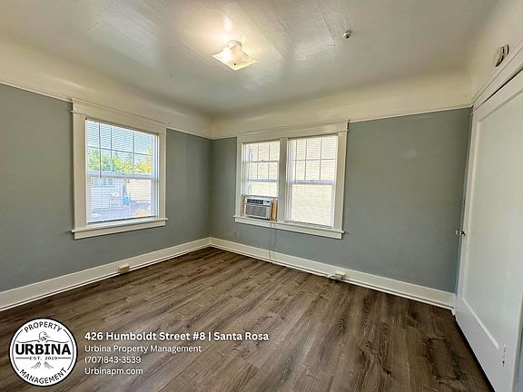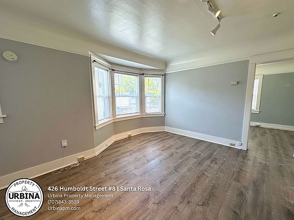 Welcome to this charming one-bedroom, one-bathroom apartment nestled in the heart of Santa Rosa! This upstairs unit is part of a beautifully maintained building that effortlessly blends classic character with modern updates. Inside, you'll find fresh, updated flooring throughout the living space and bedroom, adding a contemporary touch to the home's timeless appeal. Large windows in the living room invite natural light to flood in, creating a bright and welcoming atmosphere. The spacious bedroom features ample closet space and original architectural details that give the unit a unique personality. Enjoy the convenience of off-street parking and an on-site shared laundry facilityno trips to the laundromat needed. Located just minutes from Downtown Santa Rosa, you'll have easy access to restaurants, shops, public transportation, and local events. If you're looking for a stylish apartment with vintage charm, modern upgrades, and a prime location, this is the perfect place to call home.