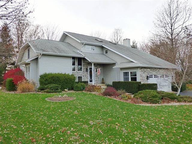 Peace and tranquility await you in this spacious 4 bedroom home with finished basement on over an acre of land. Cozy but plenty of space. Large eat-in kitchen includes all appliances and plenty of cabinet and counter space and opens to a sitting area with fireplace and wet bar. 2 story living room with views of your wooded backyard. Formal dining room with beautiful wood floors. Main floor office could also be a possible 4th bedroom. Upstairs are 3 large bedrooms. 4 seasons room provides gorg...