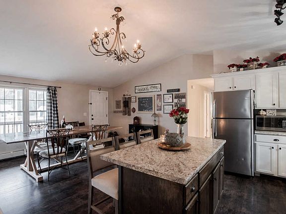 Newly remodeled 3BD modern farmhouse featuring vaulted ceiling great room with custom stone & wood fireplace. Set on 1.2 peaceful country acres in North Berwick, every room in this home has been re-imagined and re-modeled with innovative custom touches. Main floor features open plan with new cabinets & inviting dining area under large vaulted ceiling area overlooking farmers porch. The two bathrooms feature new rustic modern lighting, vanities, and fixtures. Spend cozy nights gathered around the stunning hand crafted stone & wood hearth in the large multi-purpose great room that opens up to deck. Lots of spaces to entertain and escape in this unique home including rustic bar area, workout room and large unfinished walk out basement with laundry. Lots of options for landscaping or homesteading on this sunny level lot + detached garage/sheds. Embrace the best of what country living has to offer in this modern well designed home.