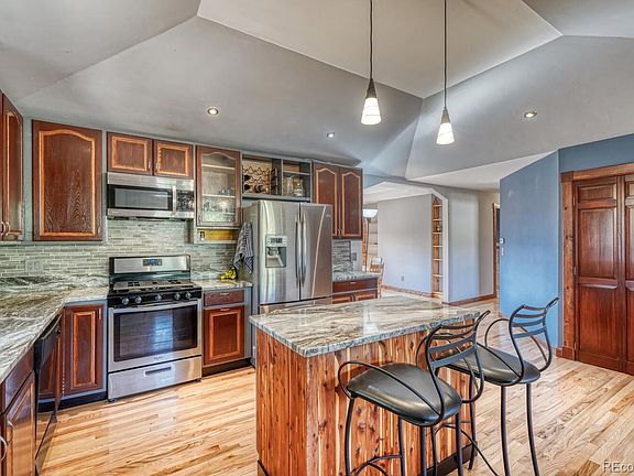Custom Remodeled (2023) property with fine craftsman detail inside and out, all with an opening living addition with Mountain Views – all on 6.27 acres with your own private registered pond. 1660 square ft. provides 3 large bedrooms with one built in trammel wall bed and 1.5 baths of open living. The open concept design allows for the living room, kitchen and the dining room to function as one large open space of living with oak hardwood flooring and custom trim throughout. The gorgeous kitchen with granite counter tops, tile backsplash, island wrapped with cedar planks, vaulted ceiling with expansive counter top and ample storage throughout. The kitchen has an island, still yet allowing for plenty of room for several cooks to move around the kitchen to perform the cooking and entertaining. The Living room exits off to the North onto the large covered side deck overlooking the pond with a custom stone pathway to the open air gazebo, great place for wildlife watching. Of to the South of the house is a detached 3 vehicle carport with storage and work shop, totaling 1036 square ft. Relax in the living room addition with a vaulted ceiling, windows featuring the Sangre de Cristo Mountains and an energy efficient wood stove. This property boarders BLM Public lands to the South. The property offers the perfect blend of custom craftsmanship, thoughtful design, and serene natural beauty – ideal for those seeking comfort, space, and a true Colorado Lifestyle. Property is on two lots, access is off Blarney Stone. This one won’t last long, call for a viewing appointment now!