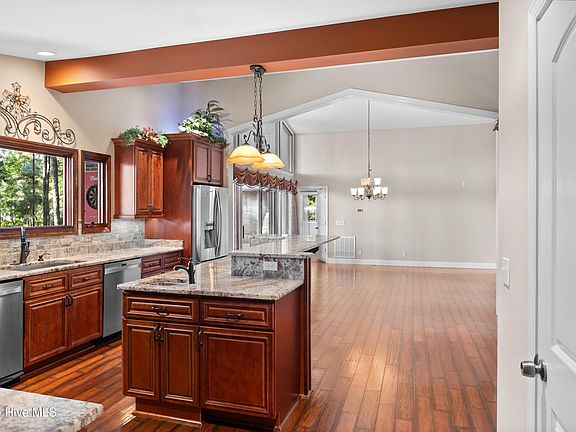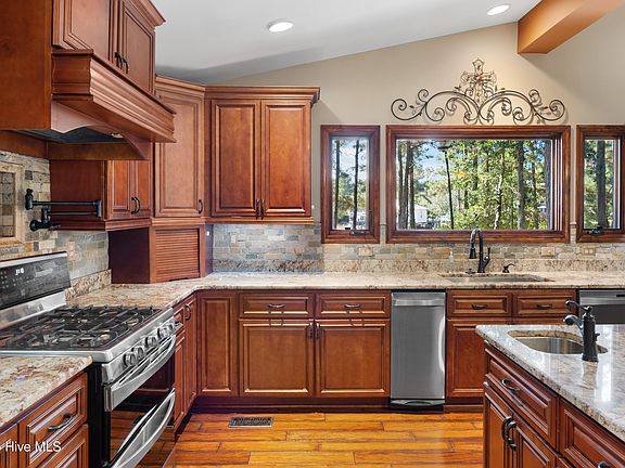 Beautifully landscaped groundsLakefront viewsGourmet kitchenHorseshoe pitCovered deckMaster suiteSpa-like two-person shower