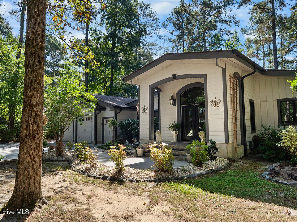 Experience luxury lakefront living in this stunning 2,250 sq. ft. home located in the desirable gated community of Woodlake Country Club. This 3-bedroom, 2-bath residence features an open floorplan with a spacious family room (or optional additional bedroom), a gourmet kitchen with a pasta filler above the stove, and thoughtful touches like a trash compactor and provided curtains and decor. The insulated 2 -car garage offers heating, A/C, epoxy flooring, and abundant attic storage. The master suite boasts a spa-like two-person shower for ultimate relaxation. Step outside and enjoy beautifully landscaped grounds with outdoor lighting, a covered deck with furnished seating, a gas grill connected to propane, and a firepit (with 1 rack of wood provided). Entertain with ease at the patio dining set, challenge friends at the horseshoe pit or dartboard, or nurture your green thumb with the greenhouse and fenced tomato garden. With lakefront views and top-tier amenities, this home offers the perfect blend of comfort, elegance, and recreation.