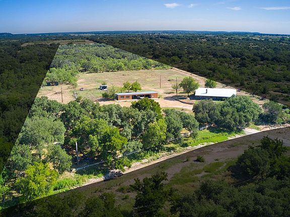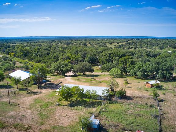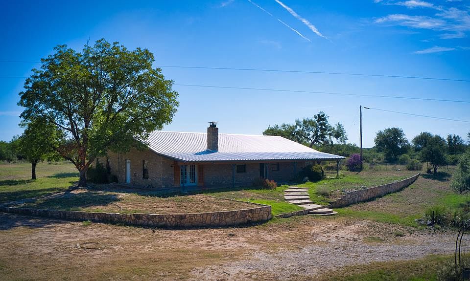 Great opportunity to purchase a spacious rock home on 29.2 acres. Home is on a knoll near Big Bluff Creek, but not in the flood plain. Three bedroom, three bath home is partially renovated-new roofs on all buildings, new HVAC, new hot water heaters, tile flooring, gorgeous petrified wood fireplace and island. Complete the renovation to suite your style. Acreage is mostly heavily wooded, excellent wildlife habitat with plenty of white tail deer, axis and turkey. Detached carport includes small one bedroom apartment-excellent for guests or rental.