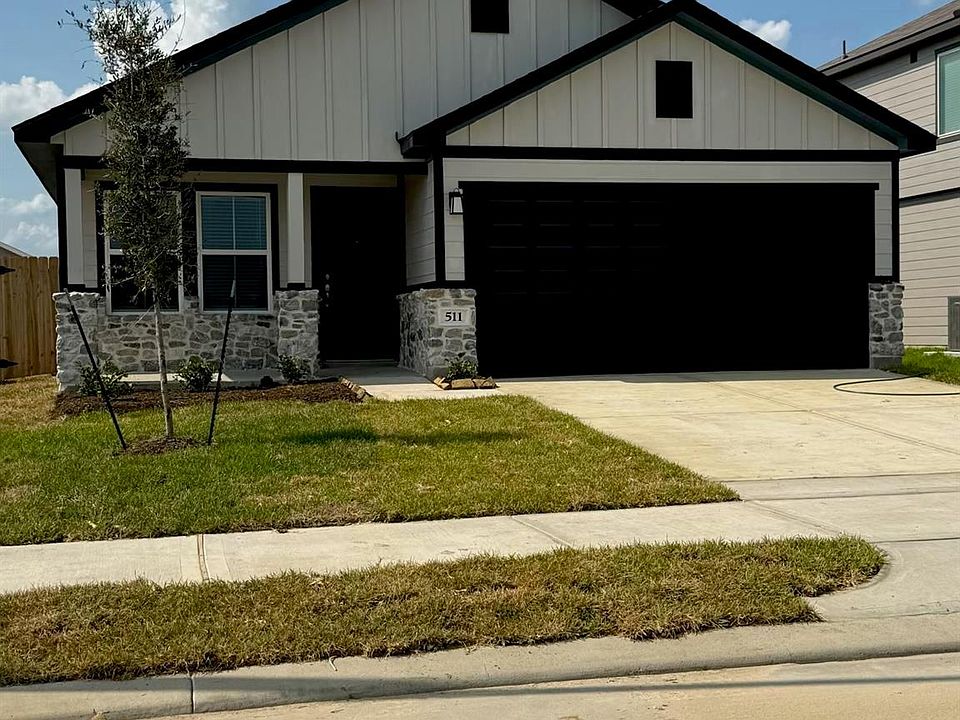 The exterior showcases a beautiful stone and stucco board design, with color schemes varying by floor plan. Community amenities include a recreational park, lakes, and walking trails, making it easy to relax or stay active.