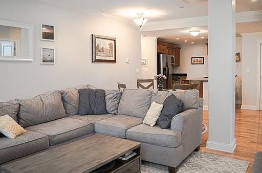 Welcome to the sought after Residences at Stoneham Square. Located in the heart of downtown Stoneham in the masterfully crafted former Love's Furniture building, this corner unit 2 bedroom, 2 bath condo is just steps away from downtown Stoneham. Features include an open floor plan perfect for entertaining with a warm and inviting fireplaced living room that leads to the dining area and kitchen. The kitchen boasts cherry cabinets, granite counters, a breakfast bar, and stainless steel appliances. The master bedroom offers a walk-in closet and spacious ensuite bath with double sinks. The second bedroom is also spacious and features double closets for plenty of storage. This unit has gleaming hardwood floors and crown molding throughout, tremendous natural light, a remarkable common roof deck, in-unit laundry, and two parking spaces! Located near restaurants, shops, the Stoneham Theatre, I-93 and I-95, and public transportation, you are sure to LOVE this home.